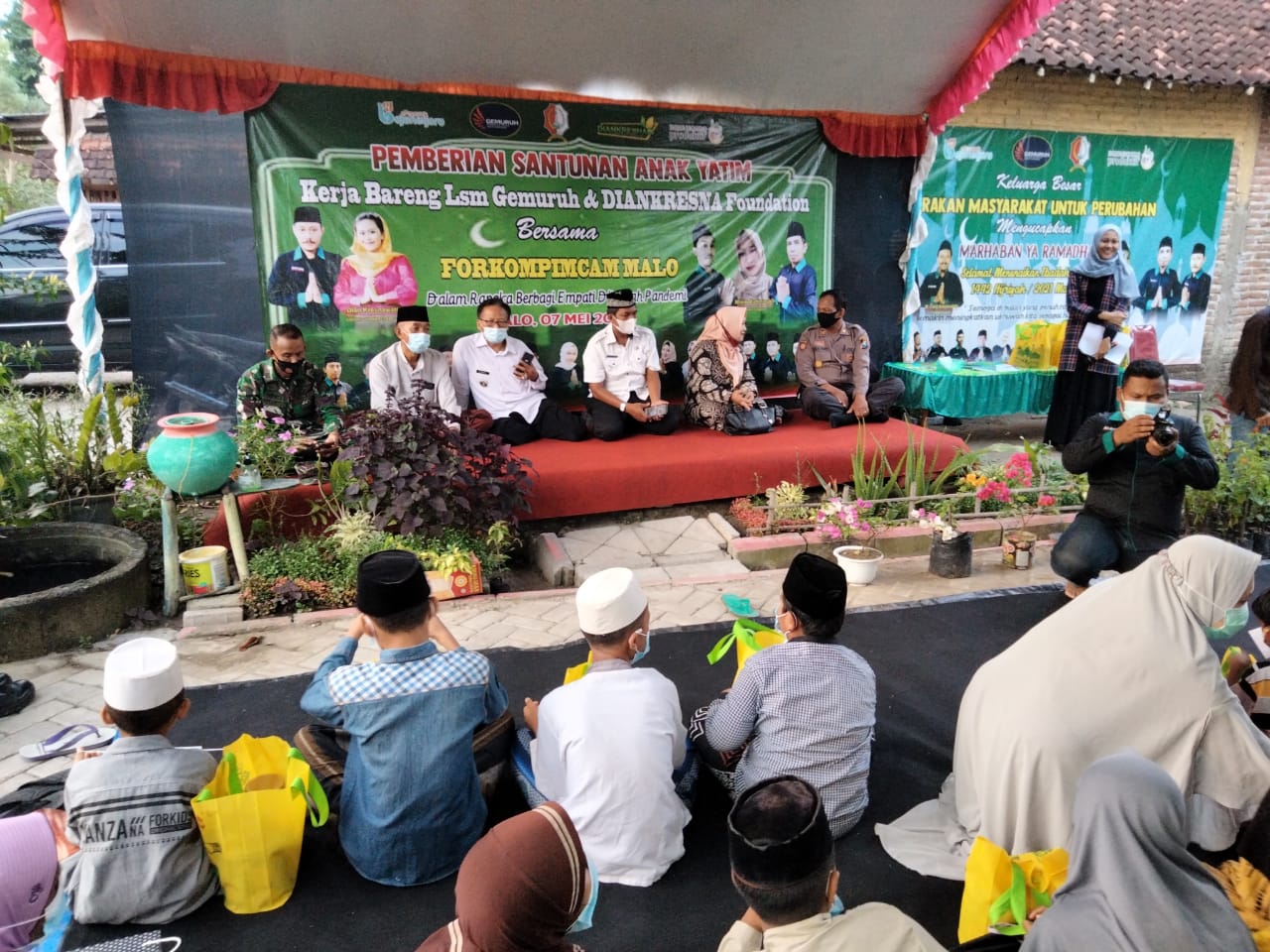 Hadir dalam acara pemberian santunan tersebut, Kepala badan Kesbangpol Bojonegoro, Mahmudi, S.Sos MM, Forkopimcam Malo, Pegiat literasi Oktian Ika Ardiani, S.PD, Ketua DIANKRESNA Foundation Dian Kresnawati, S.TP, dan Ketua LSM Gemuruh Suryanto.