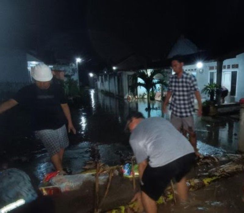 Air mulai menggenangi rumah warga setelah hujan berintensitas tinggi turun selama beberapa jam. Luapan sungai menyebabkan jalan lingkungan dan pekarangan rumah tergenang, dengan ketinggian air bervariasi dari lutut hingga pinggang orang dewasa.