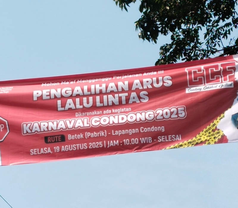 PILIHANRAKYAT.ID, Probolinggo-Warga di sekitar Condong diminta mewaspadai adanya pengalihan arus lalu lintas pada Selasa, 19 Agustus 2025. Pengalihan ini dilakukan untuk mendukung kelancaran kegiatan Condong Carnival Festival (CCF) 2025 yang akan digelar mulai pukul 10.00 WIB hingga selesai.
