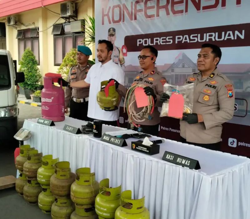 PILIHANRAKYAT. Pasuruan-Satuan Reserse Kriminal Polres Pasuruan mengungkap praktik penyalahgunaan gas elpiji bersubsidi di wilayah Kecamatan Purwosari. Kasus ini terungkap setelah adanya penyelidikan terkait distribusi gas yang tidak wajar di wilayah tersebut.