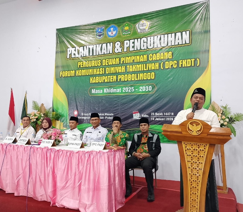 Pelantikan pengurus baru DPC FKDT Kabupaten Probolinggo ini menjadi momentum konsolidasi organisasi untuk memperkuat peran pendidikan keagamaan nonformal, khususnya Madrasah Diniyah Takmiliyah yang tersebar di berbagai kecamatan.