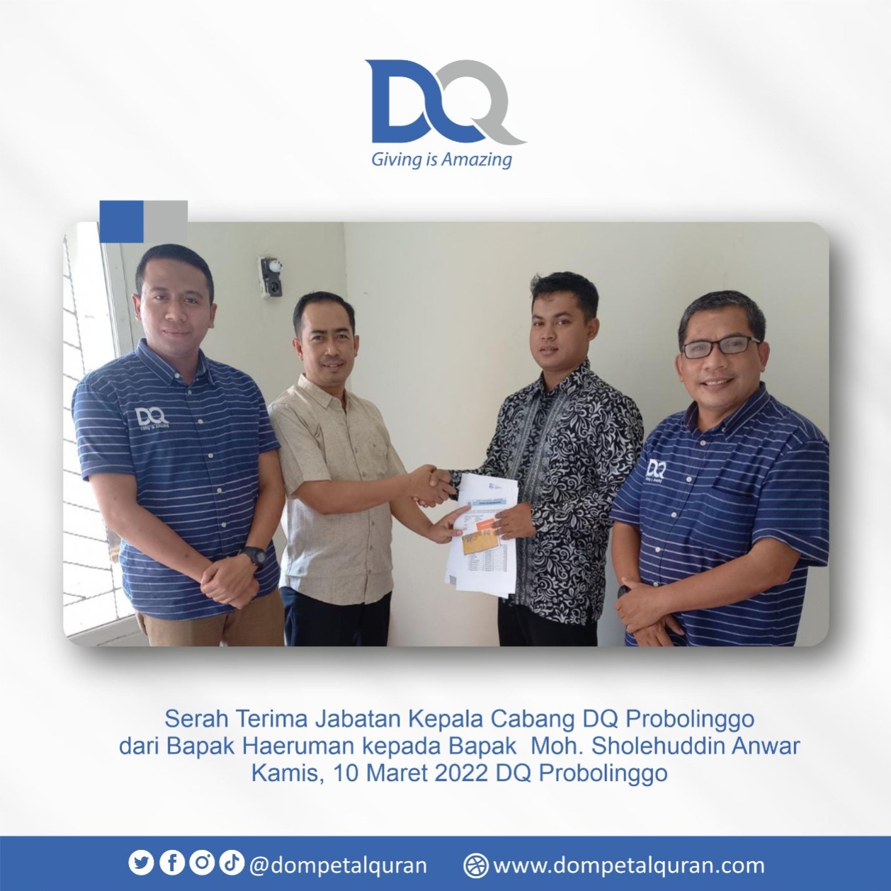 Moh. Sholehuddin Anwar ditunjuk sebagai nahkoda DQ di Kab. Probolinggo menggantikan Haeruman berkometmen untuk semakin bermanfaat pada masyarakat yang membutuhkan.