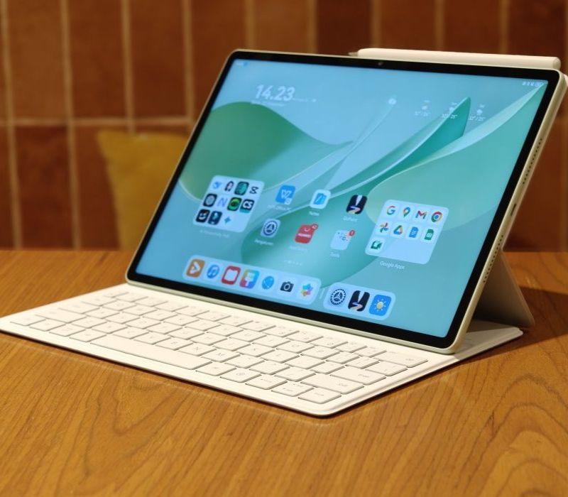 Dari sisi desain, tablet ini mengusung bodi logam unibody dengan ketebalan sekitar 5,9 milimeter dan bobot di kisaran 560 gram. Huawei menyebut total bobot perangkat tetap di bawah satu kilogram saat dipasangkan dengan keyboard magnetik.