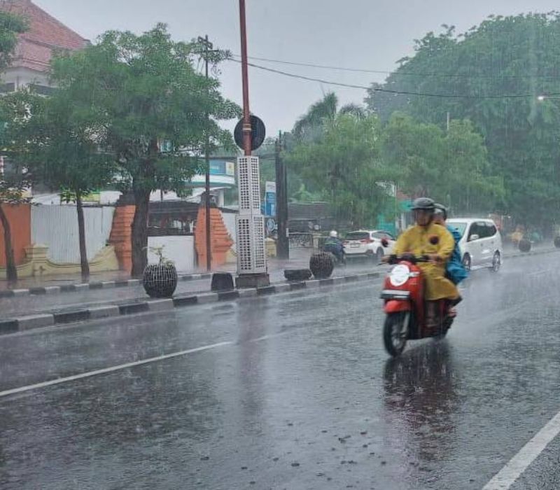 Suhu udara di wilayah Jawa Timur berkisar antara 23 hingga 33 derajat Celsius, dengan tingkat kelembapan mencapai lebih dari 60 persen. Kondisi tersebut membuat cuaca terasa cukup gerah sebelum hujan turun.