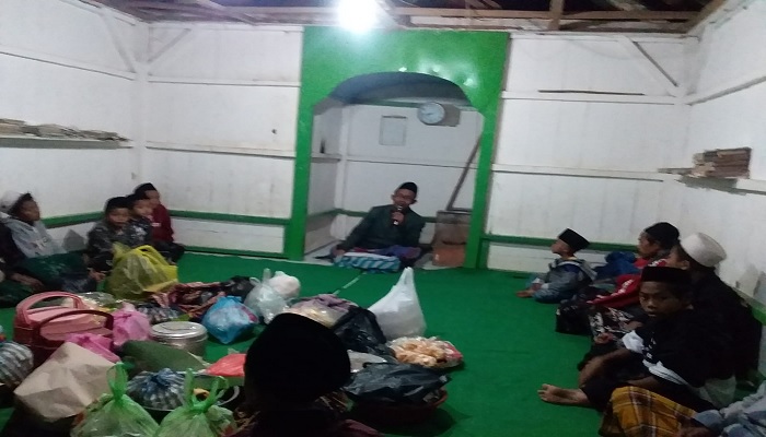 Syamsuddin sebagai tokoh agama di RT 02/ RW 01 Desa Watupanjang Kec. Krucil menjelaskan akan perjalanan Kanjeng Nabi Muhamad saat melakukan Isro’ dan Mi’roj.