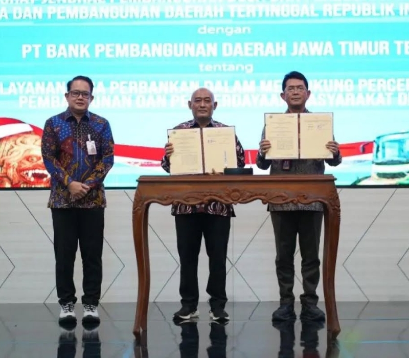 PILIHANRAKYAT.ID, Surabaya-PT Bank Pembangunan Daerah Jawa Timur Tbk atau Bank Jatim menjalin kerja sama dengan Direktorat Jenderal Pembangunan Desa dan Perdesaan Kementerian Desa dan Pembangunan Daerah Tertinggal (PDT) untuk memperluas akses layanan keuangan bagi masyarakat desa. Kolaborasi ini diteken dalam bentuk Perjanjian Kerja Sama yang berfokus pada fasilitasi layanan perbankan guna mendukung percepatan pembangunan desa.