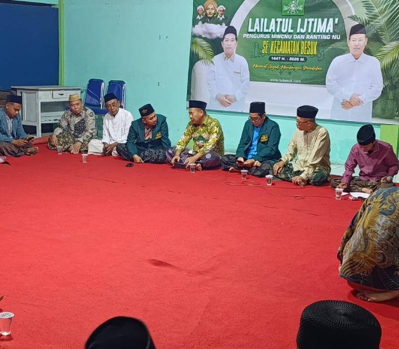 PILIHANRAKYAT.ID, Probolinggo-Majelis Wakil Cabang Nahdlatul Ulama (MWCNU) Kecamatan Besuk melaksanaan Lailatul Ijtima’ yang dirangkai dengan rapat koordinasi sejumlah agenda organisasi pada Selasa malam, 20 Januari 2026. Kegiatan tersebut akan berlangsung di Pendopo Kecamatan Besuk, mulai pukul 19.30 WIB.