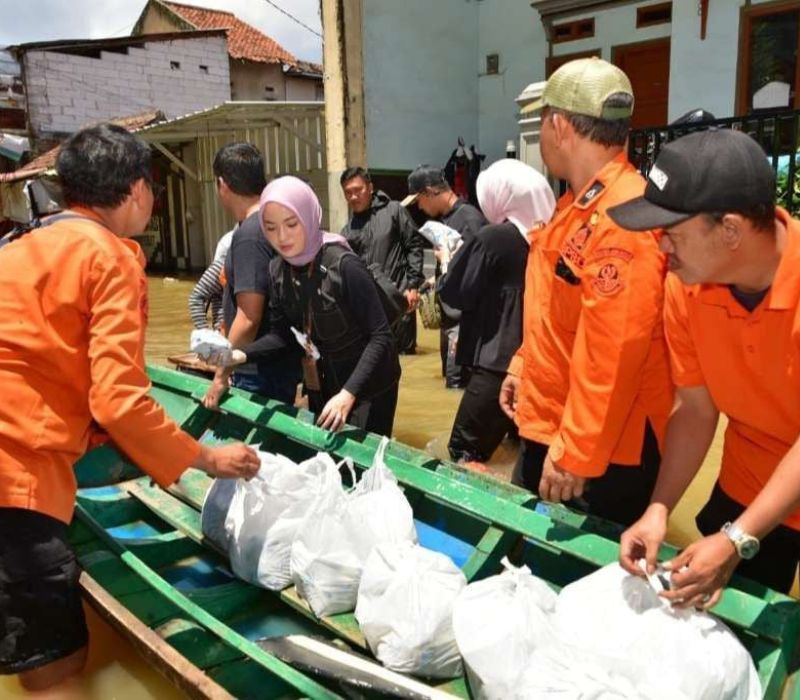 Rombongan terdiri atas unsur Biro Administrasi Pimpinan, BPBD Jawa Barat, DP3AKB, serta BAZNAS. Mereka melakukan pendataan lapangan, memeriksa titik genangan, dan membagikan bantuan logistik bagi warga yang terdampak. Pemerintah menyebut ribuan warga harus mengungsi sementara akibat rumahnya terendam.