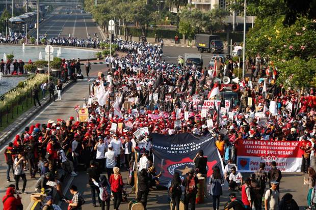 PILIHANRAKYAT.ID, Jakarta-Ribuan buruh hari ini diperkirakan turun ke jalan untuk memperingati Hari Buruh Internasional atau May Day. Lokasi titik kumpul buruh berada di Jalan Jenderal Sudirman, MH Thamrin, dan Medan Merdeka Barat, persinya di kawasan Istana Negara.