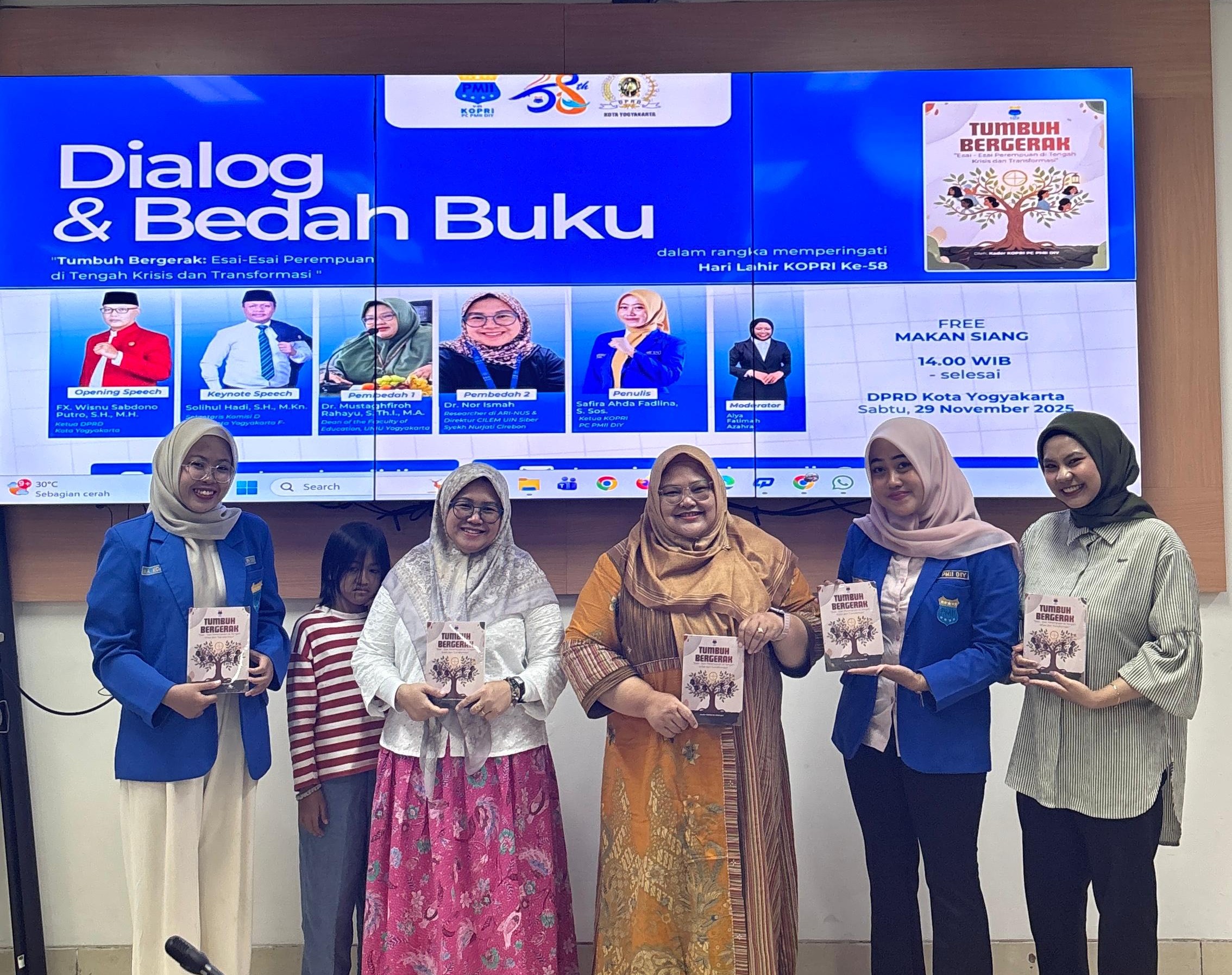 PILIHANRAKYAT.ID, YOGYAKARTA – Korps Pergerakan Mahasiswa Islam Indonesia Putri (KOPRI) PC PMII DIY memperingati Hari Lahir (Harlah) ke-58 dengan cara intelektual. Mereka menggelar Dialog dan Bedah Buku bertajuk “Tumbuh Bergerak: Esai-Esai Perempuan di Tengah Krisis dan Transformasi” Sekaligus Launching Lembaga Women Creativpreuner di Gedung DPRD Kota Yogyakarta, Sabtu (29/11/2025).