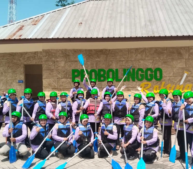 PILIHANRAKYAT.ID, Probolinggo-Rombongan dari Puskesmas Kotaanyar, Paiton, Kabupaten Probolinggo, mengunjungi wisata arung jeram Probolinggo Rafting pada Sabtu, 25 April 2026. Kegiatan tersebut diikuti sebagai agenda rekreasi akhir pekan bersama para pegawai.
