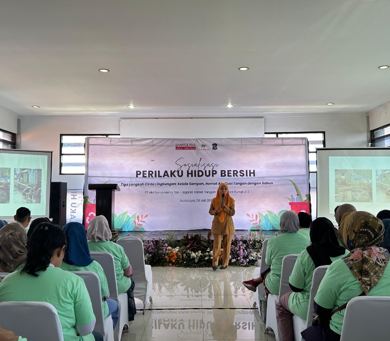 PILIHANRAKYAT.ID, Surabaya-Komitmen terhadap lingkungan kembali ditunjukkan oleh PT HM Sampoerna Tbk., melalui unit produksinya, SKT Plant Rungkut 2. Pada Selasa (29/07/2025), perusahaan menggelar kegiatan Sosialisasi Perilaku Hidup Bersih bertempat di Balai Pertemuan Kecamatan Rungkut, Kota Surabaya. Kegiatan ini mengusung tema “Tiga Langkah Cinta Lingkungan; Kelola Sampah, Hemat Air, Cuci Tangan dengan Sabun.”