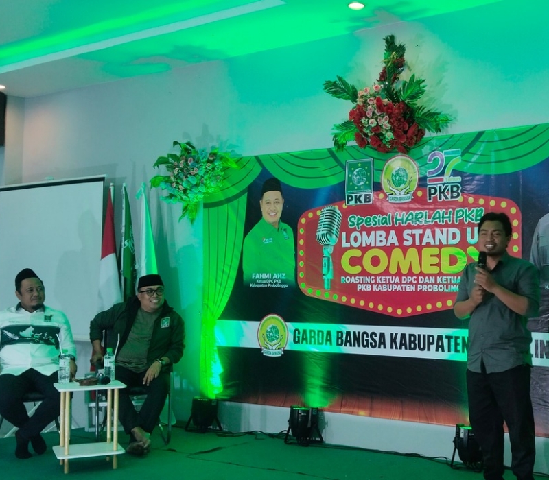 PILIHANRAKYAT.ID, Probolinggo-Dalam rangka memperingati Hari Lahir ke-27 Partai Kebangkitan Bangsa (PKB), Garda Bangsa Kabupaten Probolinggo menggelar acara yang penuh tawa dan kritik segar bertajuk Stand Up Comedy Roasting Politik, Minggu malam (27/07/2025) di Kantor DPC PKB Kabupaten Probolinggo.