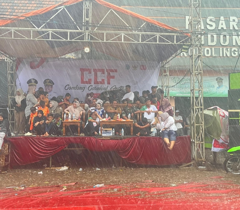 Arak-arakan peserta yang terdiri dari pelajar, perangkat desa, hingga komunitas lokal tampil dengan berbagai atraksi dan kostum kreatif bernuansa kemerdekaan. Sekitar tengah hari, hujan deras sempat mengguyur jalur karnaval. Namun, hal itu tidak menyurutkan semangat masyarakat. Warga tetap bertahan di pinggir jalan, ikut bergoyang dan mengikuti irama sound system yang mengiringi parade. Bendera Merah Putih tetap berkibar di setiap sisi jalan, sementara sorak-sorai penonton terus mengiringi jalannya acara.