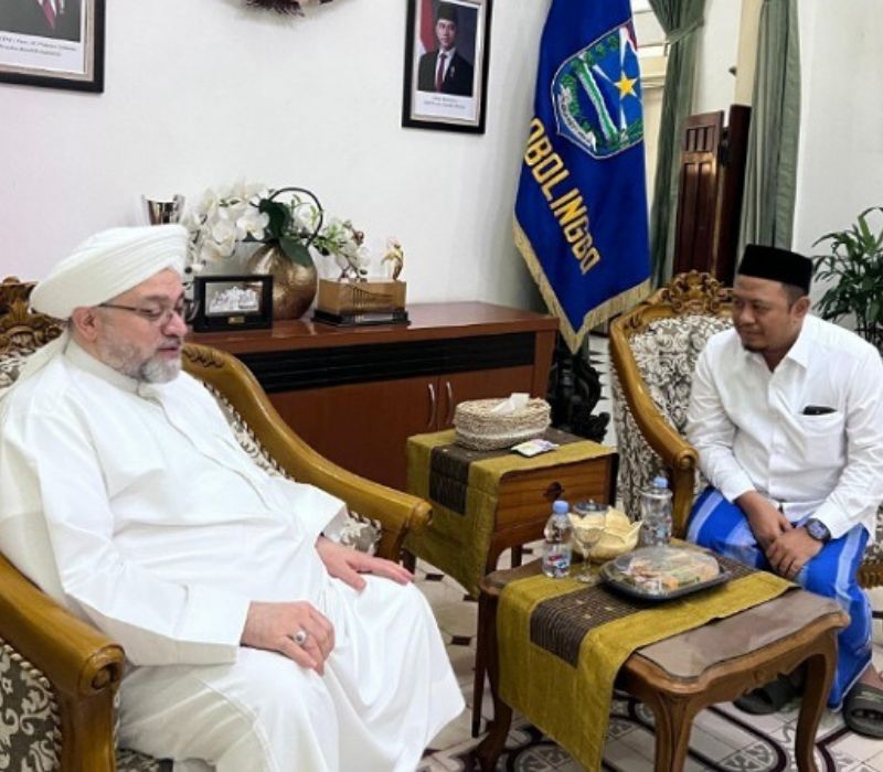 PILIHANRAKYAT.ID, Probolinggo-Ulama besar asal Baghdad, Irak, Syekh Afeefuddin Al Jaelani, mendapat sambutan hangat saat berkunjung ke Pendopo Prasaja Ngesti Wibawa, Kabupaten Probolinggo, Sabtu (20/9/2025). Kedatangannya didampingi Gubernur Jawa Timur Khofifah Indar Parawansa, serta disambut langsung oleh Wakil Bupati Probolinggo, Ra Fahmi AHZ.