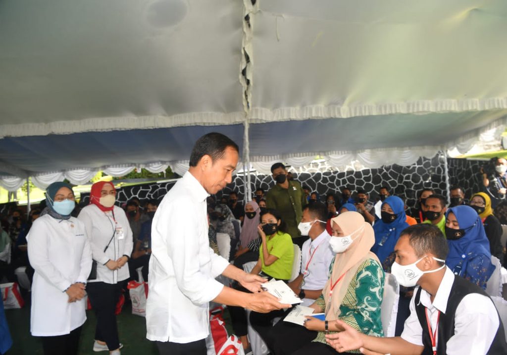 PILIHANRAKYAT.ID, Ternate-Presiden Joko Widodo meninjau penyaluran Bantuan Pemerintah Berupa Subsidi Gaji/Upah (BSU) Tahun 2022 oleh Menteri Ketenagakerjaan, Ida Fauziyah, kepada para pekerja/buruh, bertempat di Balai Pelatihan Vokasi dan Produktivitas (BPVP)…