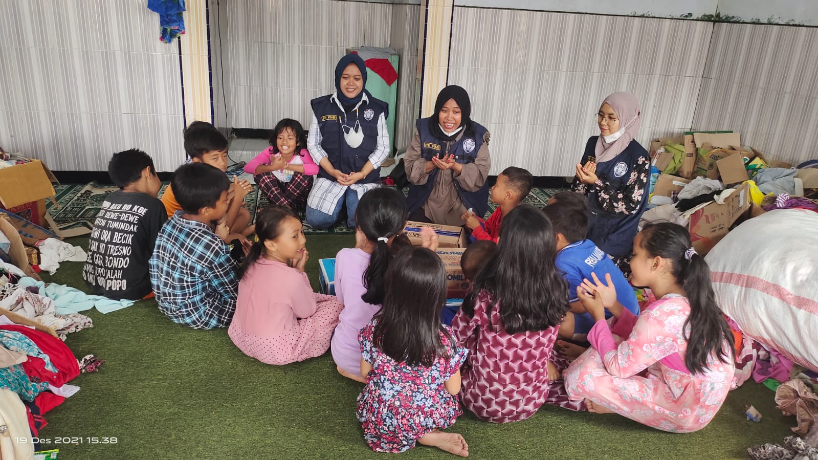 Direktur Tagana, Sahabat Adlin Panjaitan menyampaikan bentuk upaya meningkatkan dalam mengembalikan semangat anak anak yang terdampak erupsi.