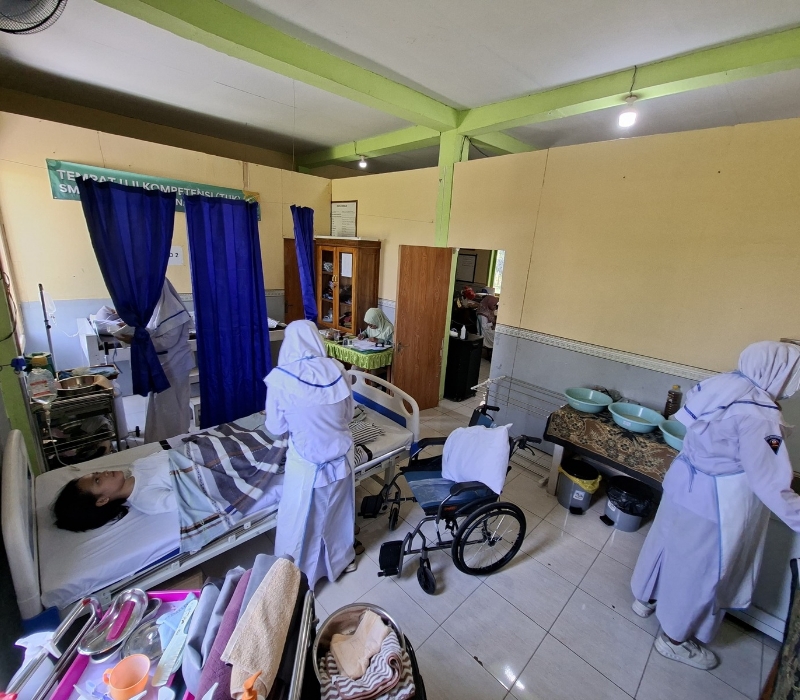 Ia menjelaskan, penilaian dilakukan melalui tiga tahapan utama, yakni ujian tulis, ujian lisan, dan ujian praktik. Dalam ujian praktik, siswa kelas 10 dan 11 dilibatkan sebagai pasien simulasi untuk menghadirkan kondisi medis yang mendekati situasi nyata.